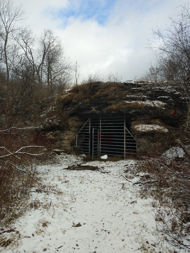 To the south, along Murder Creek there are some older under ground workings near the Akron Falls, in the Akron Falls Park. This 'cave' is very tiny and you do have to crawl through a very narrow hole to enter it. These caves are very dangerous and do flood with water sometimes. However they are likely not even caves, but rough remains of some more mine shafts or milling waterworks in the area. Entering them, however, is a lot more difficult.