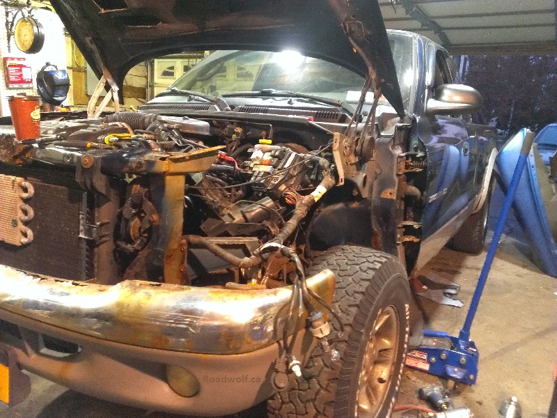 During the fall of 2016 I worked on the front fenders and cleaning up the front of the truck. It isn't perfect, but it is cleaned up for sure. The spark plugs were swapped. That in itself was a project, as one of the plug shields was bent. I had to cut the shield off in order to gain access to the plug, and use an impact wrench to drive it out. Luckily, the threads ended up being fine, and a new plug went in, no problem.
