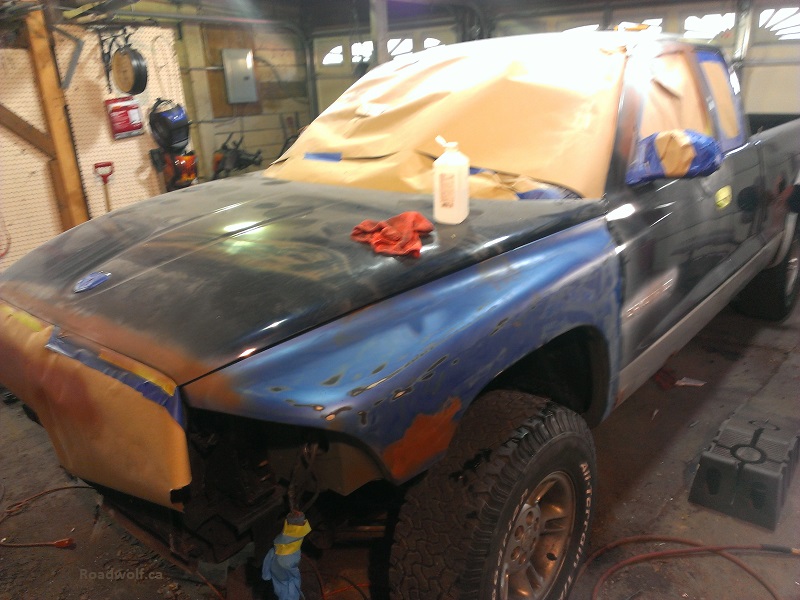 Wearing the SCBA (sometimes I just wore a respirator when I was doing lighter coats), I applied about 5 coats of the Army Green paint to the truck. Mostly focusing on the front portion of the truck. The bed, I wasn't sure about what I would do, so I didn't want to focus too much on it. I am still not too sure about what to do with it.
