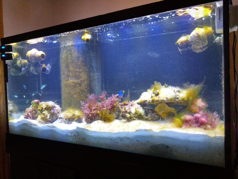 Last week I has purchased some new fish. Blue Back Chromis. I also purchased a Royal Gramma. So the aquarium is fairly lively now. The time I usually would spend writing updates on this blog, are spent starting into my fish tank, watching all the life.