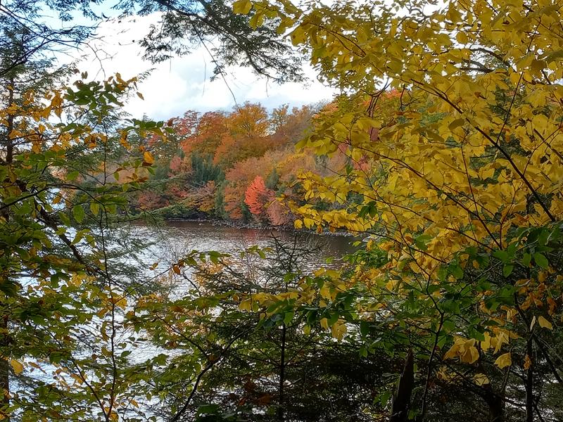 This time, I ended up picking a time right around Columbus day, and indeed the fall colors were in full swing up in the Adirondaks. We stayed in my favorite campground, Cranberry Lake. And while the plan was to attempt a hike up Bear Mountain this year, we just didn't get up there. Maybe next year! We do for sure want to climb a mountain, legit. But we kind of did some mountain climbing this time. More on that later.