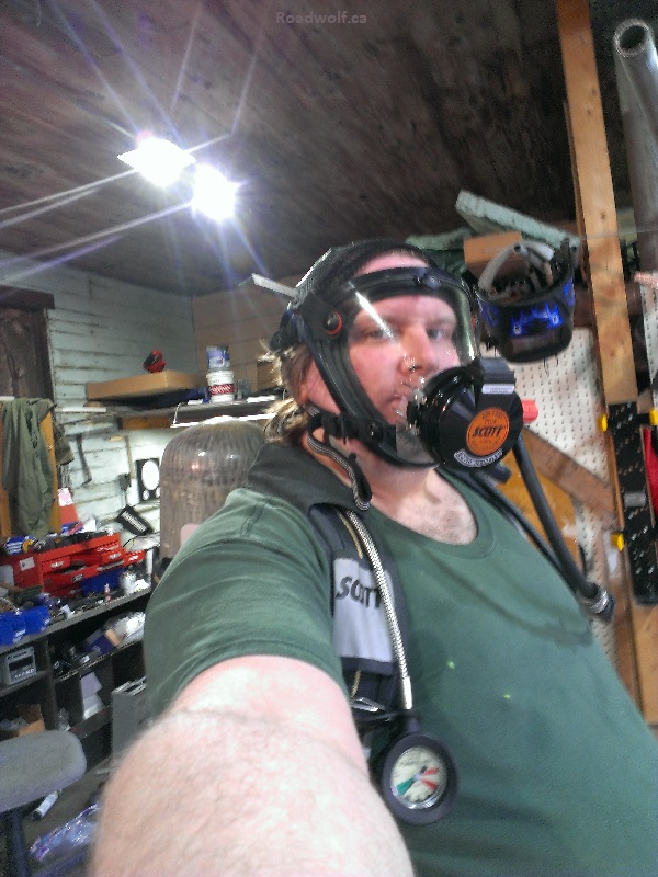 Wearing the SCBA (sometimes I just wore a respirator when I was doing lighter coats), I applied about 5 coats of the Army Green paint to the truck. Mostly focusing on the front portion of the truck. The bed, I wasn't sure about what I would do, so I didn't want to focus too much on it. I am still not too sure about what to do with it.