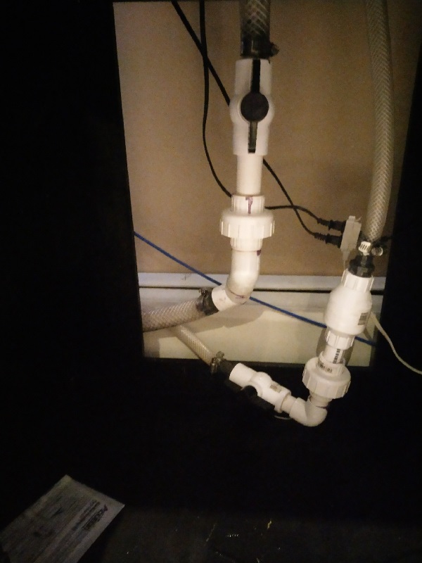 I removed some excess tubing and created a more direct, downward flow, which I believe will help flow, and eliminate the gurgling noise. Compare the above photo, to the previous setup... and you will see why that is.