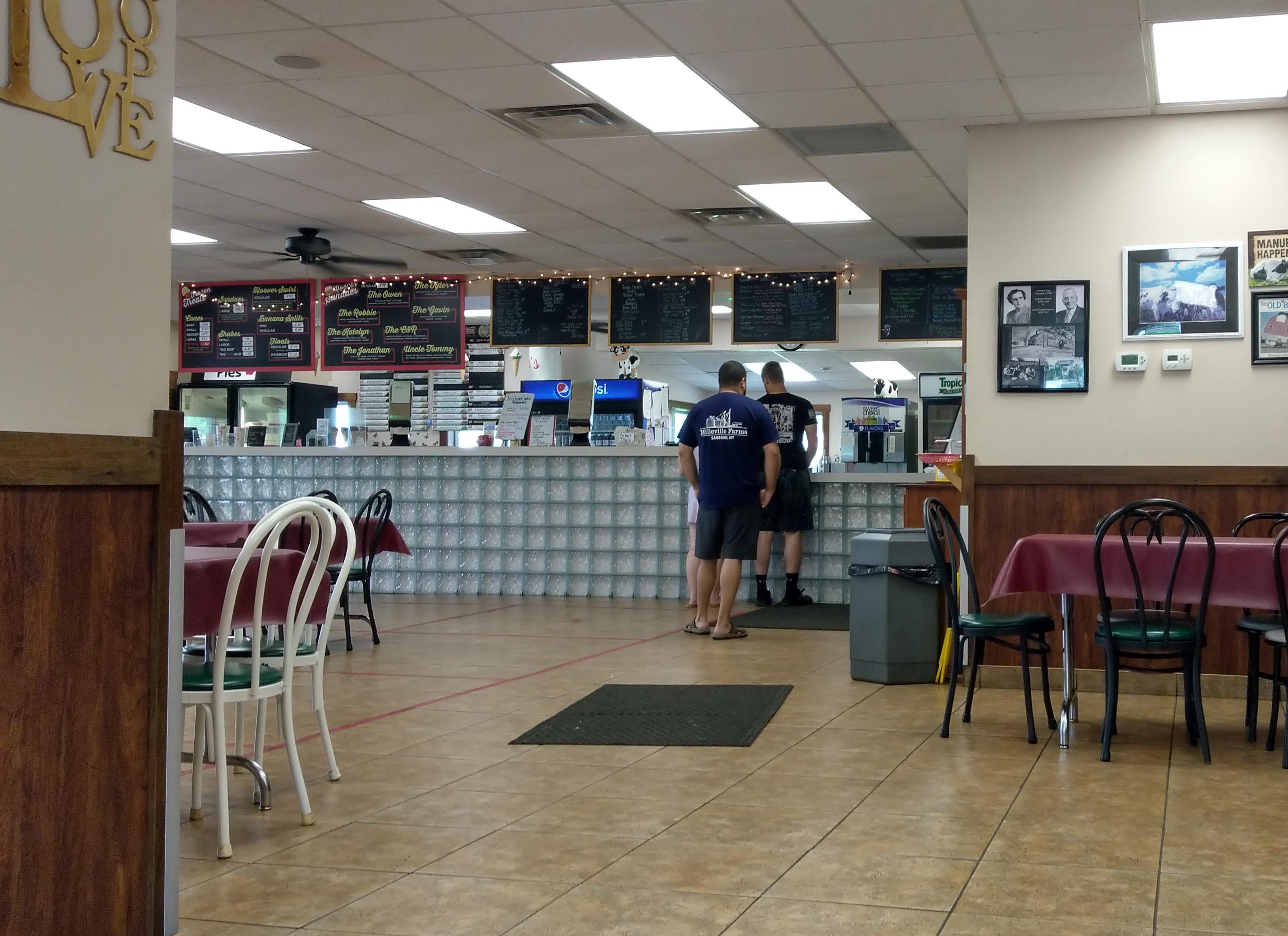 Between here and Sanborn, NY, there is a discrete restaurant off to the side called Hoover's Restaurant. It is attached to Hoover's Dairy. I recommend stopping in and sampling some of their great selection. I especially love that they still sell their own milk, in old glass milk jars. They have some great sandwiches and other meals as well as a selection of local Ice Cream. They often host classic car meetups.